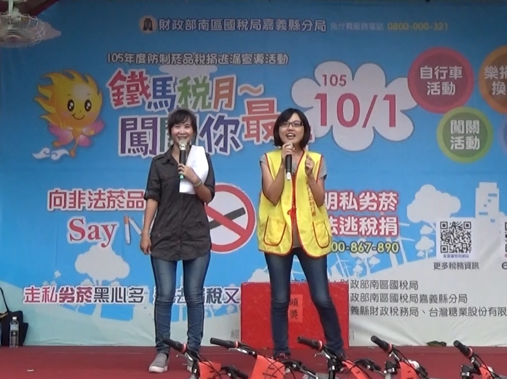 法務部行政執行署嘉義分署為行銷倡廉反貪觀念及推展行政執行新措施,於105年10月1日上午7時30分結合財政部南區國稅局嘉義縣分局「105年度防制菸品稅捐逃漏宣導活動-「鐵馬稅月~闖關你最行」,於雲嘉區處蔗埕文化園區內舉辦嘉義分署105年「嘉執熱氣球航向幸福」暨讚廉拒貪活動,現場擺放「廉政知多少,報給你知」大型看板,以及懸掛宣導旗幟及擺放宣導海報。