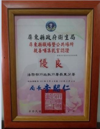 屏東縣政府衛生局為喚起民眾對母乳餵哺的重視。針對本縣多家通過認證的職場進行評鑑,藉此呼籲職場、公共場所設置哺集乳室,給媽咪友善的空間,安心的哺育下一代。法務部行政執行署屏東分署在此次的評鑑中,用心打造職場哺乳友善空間,並榮獲屏東縣職場暨公共場所親善哺集乳室優良獎。